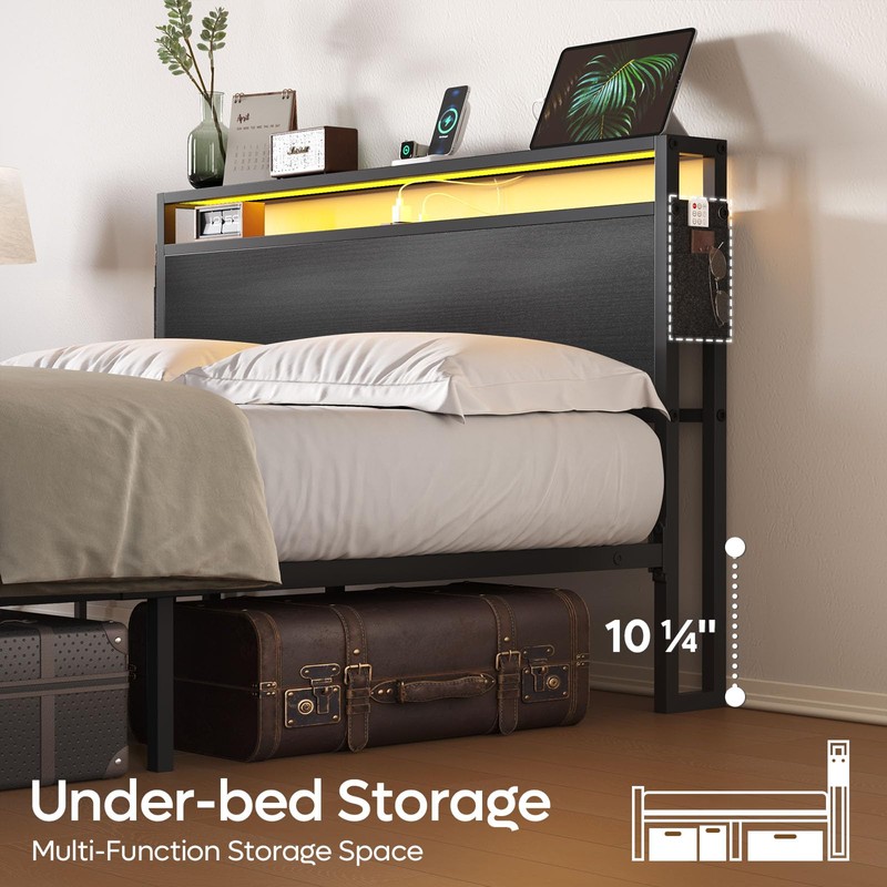 - 【Multi-Function Storage】The full bed frame with headboard has 2 tier storage shelves could keep small items. The under-bed storage space is easy to collect luggage