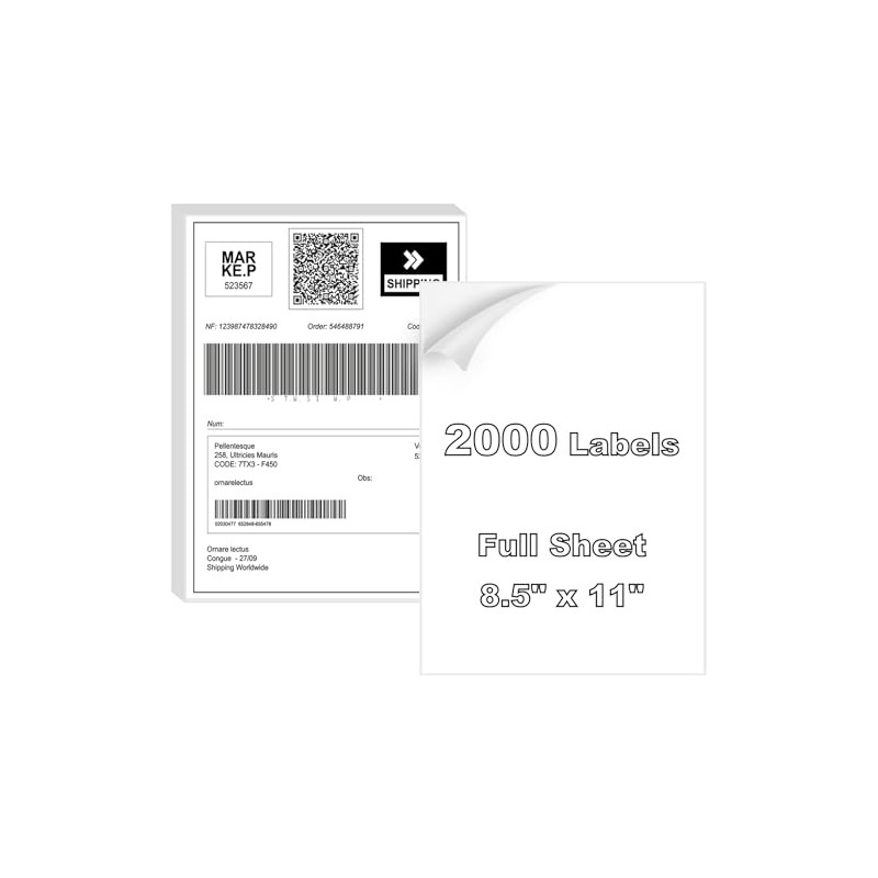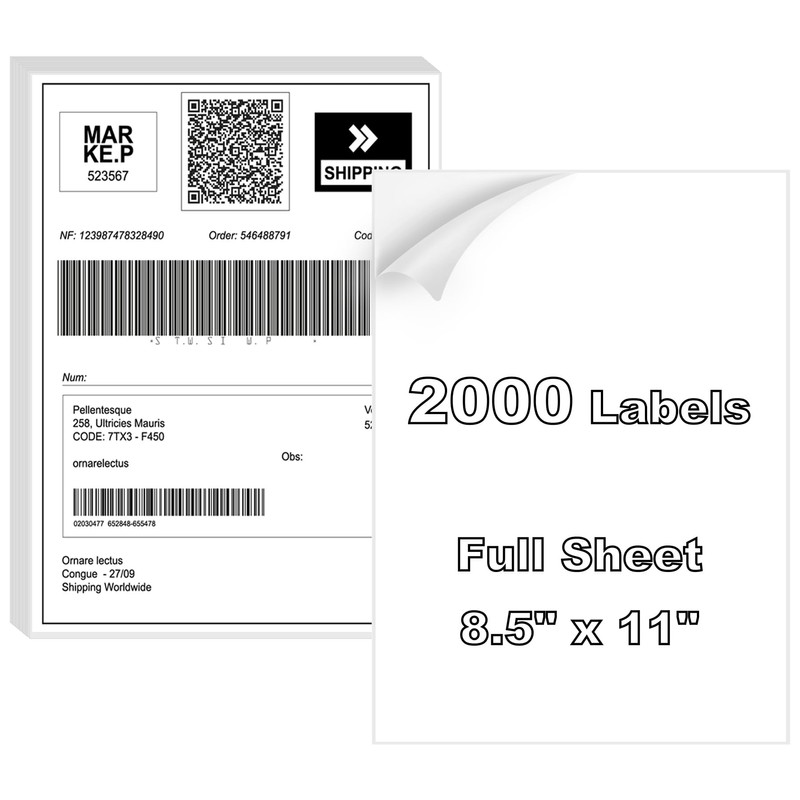 BESTIKER Full Sheet Labels 8.5” x 11” Shipping Labels Large Address Labels, Printable White Sticker Paper for Laser & Inkjet Printers Self-Adhesive Label [2000 Sheets]