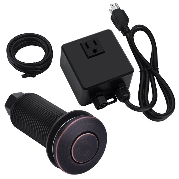 BESTILL Sink Top Garbage Disposal Air Switch Kit, Oil Rubbed Bronze Long Push Button with Brass Cover, UL Listed
