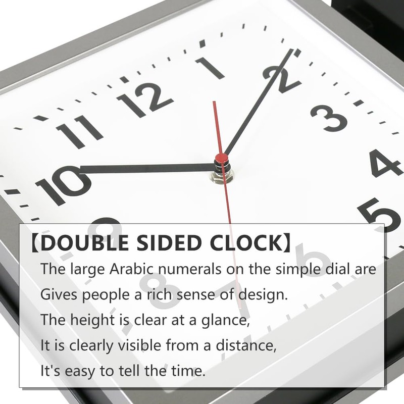 - Double-sided wall clock is made of plastic material. The sturdy frame and glass lens are easy to clean and prevent dust from entering the watch face. Easily read the time with black hands, glass crystal and light dial. Designed to hang from indoor walls or ceilings.