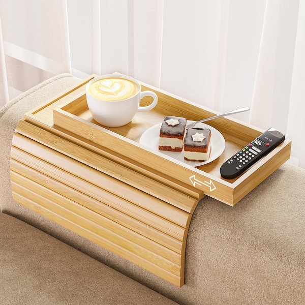 The plain bamboo color is also easy to match with your sofa, bringing more natural flavor to your living room. With our couch armrest table, you can drink & snack on treats as you watch TV! Reach for your beverage & snack without getting up from your seat with our couch tray table.
