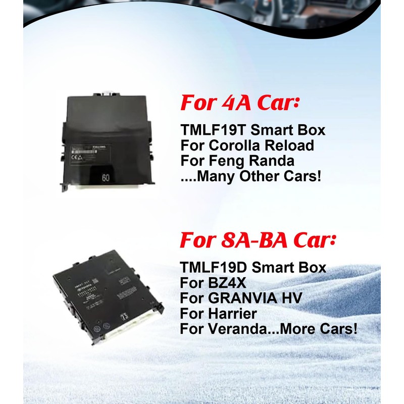- 🚗Compatibility: Fit for 4A Models (equipped with TMLF19T smart key box): Yaris 2020+ (XP210) Yaris Cross 2021+ (XP210) Corolla Facelift 2022+ (E210) Corolla Cross Facelift 2022+ (XG10) 8A-BA Models (equipped with TMLF19D smart key box): Sienna 2020+ (XL40) Harrier/Venza 2020+ (XU80) Tundra 2021+ (XK70) Land Cruiser 2021+ (J300) RAV4 Facelift 2022+ (XA50)