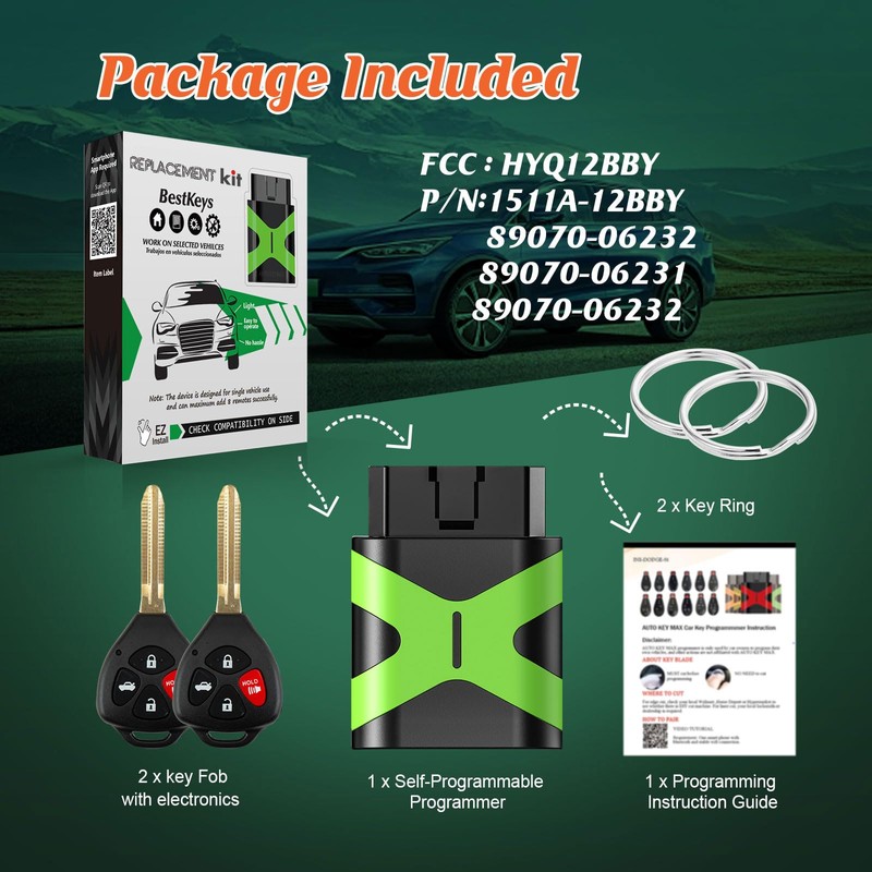 BestKeys at-Home Setup Assitantming assitant Compatible with 2007 2008 2009 2010 for Toyota Camry Remote Control HYQ12BBY (4-BTN Program by Yourself Kit for no Key)