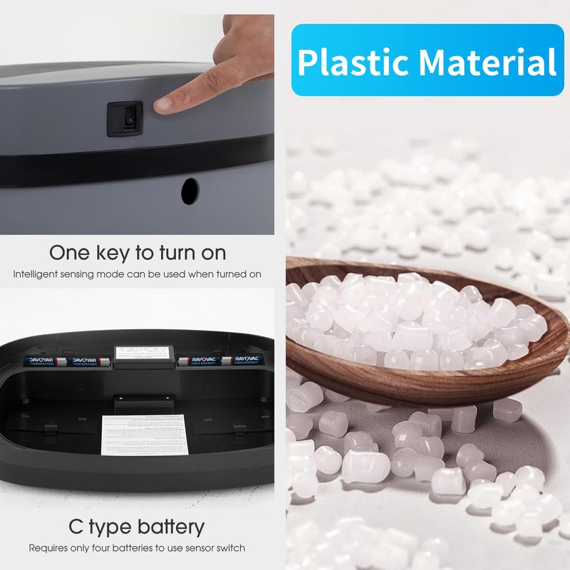 - Super power saving:With just 4 C batteries, this inductive trash can can last you a long time.