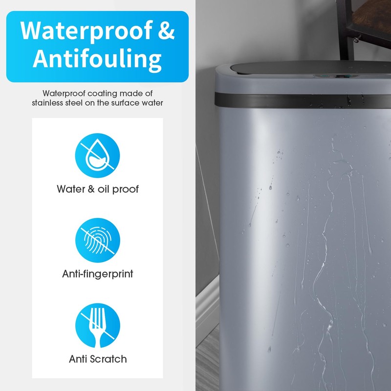 - Waterproof, Anti-fingerprint and Anti-scratch Features: This garbage can is extremely practical, waterproof, drop resistant, scratch resistant, fingerprint-proof and perfectly sealed.