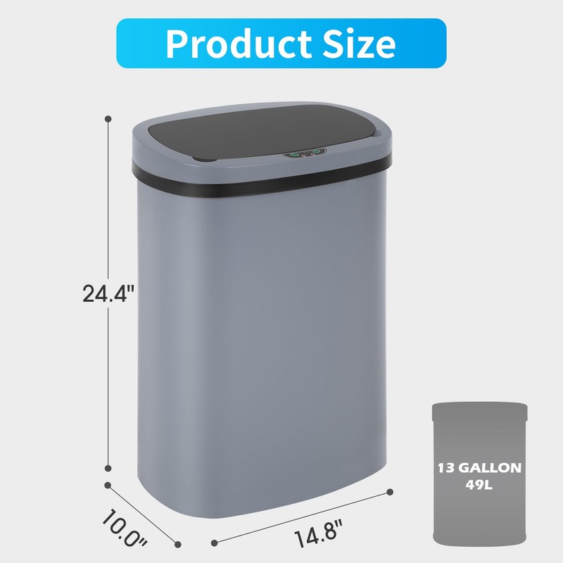 - Ultra-large capacity:Our trash can measures 14.8*10*24.4 inch,With a large capacity of 49L, it can fully meet the needs of daily life.