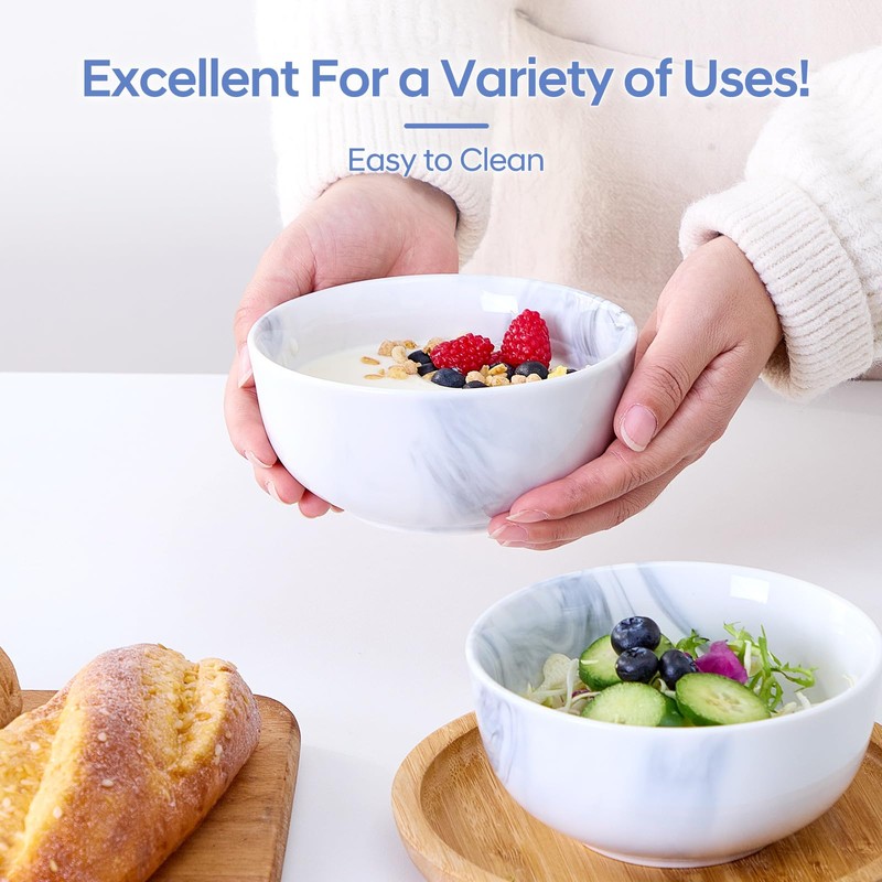 - 【A VERSATILE STYLE FOR MULTIPLE OCCASIONS 】– Marble Blue porcelain bowls can match any kinds of table linen and suitable for Cereal Oatmeal Fruit Salad , Rice and any other goodies you want to showcase for any occasions or just for everyday use