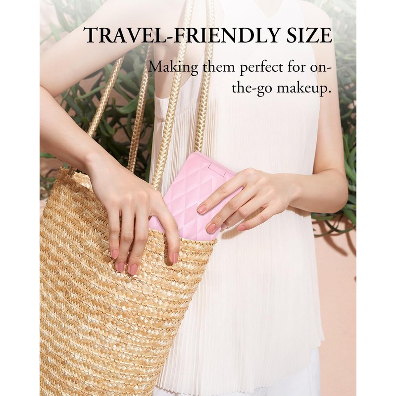 - Professional Makeup Brush Set: This makeup brush set includes an organizer with an LED light mirror, a cleaning cloth, 2 mini makeup puffs, and 16 mini makeup brushes. These include 6 face makeup brushes (foundation brush, powder brush, concealer brush, blending brush, fan blush brush, and nose contour brush) and 10 detail brushes (eye shadow brush, flame highlighter brush, eyebrow brush, eyelash brush, lip brush, mascara brush, etc.). One set of brushes covers all your travel makeup needs.