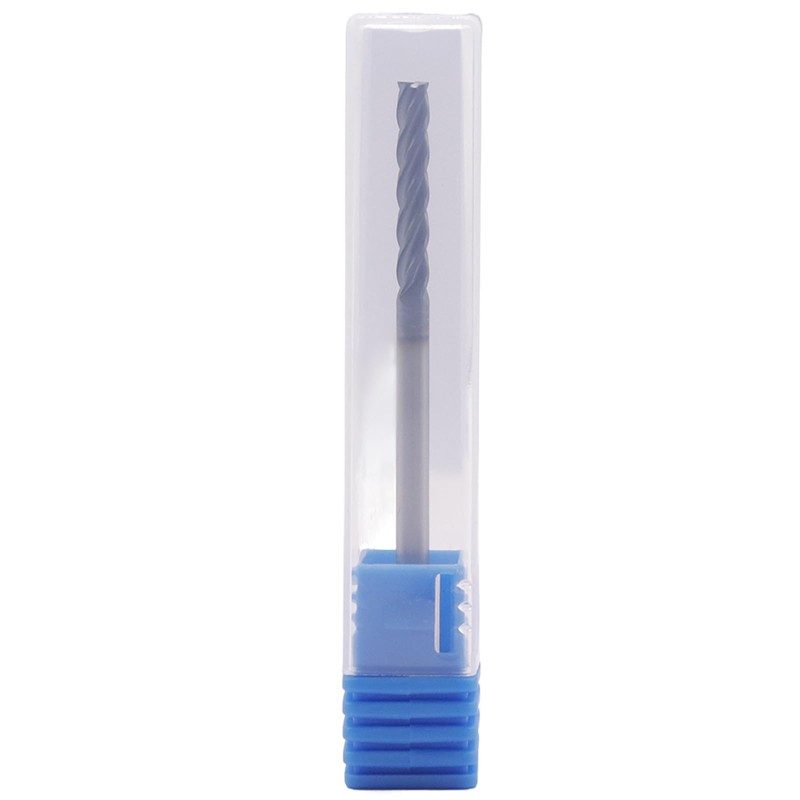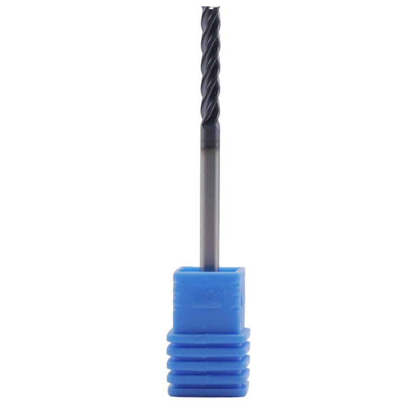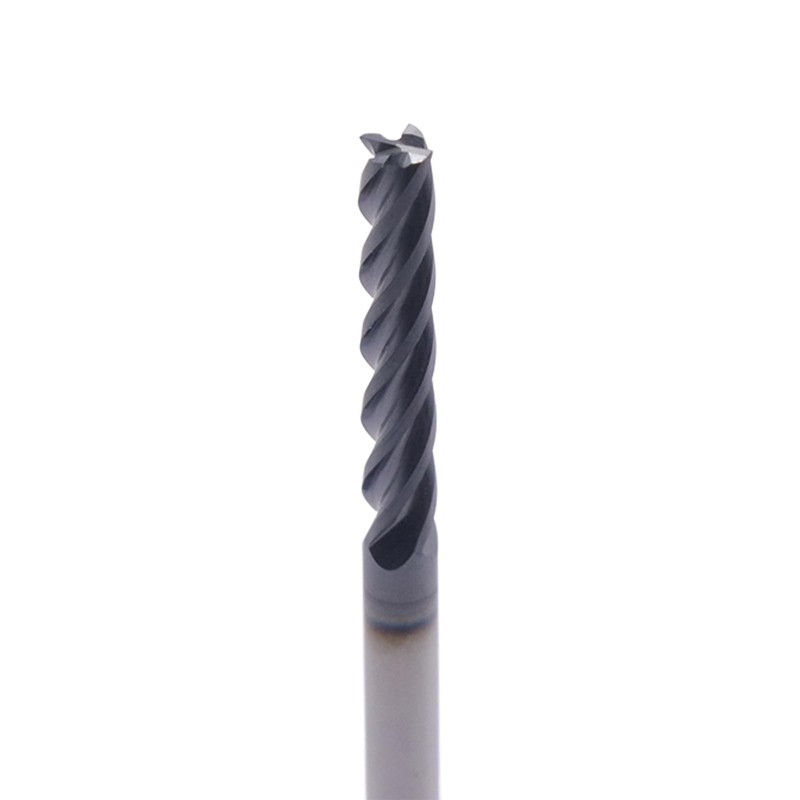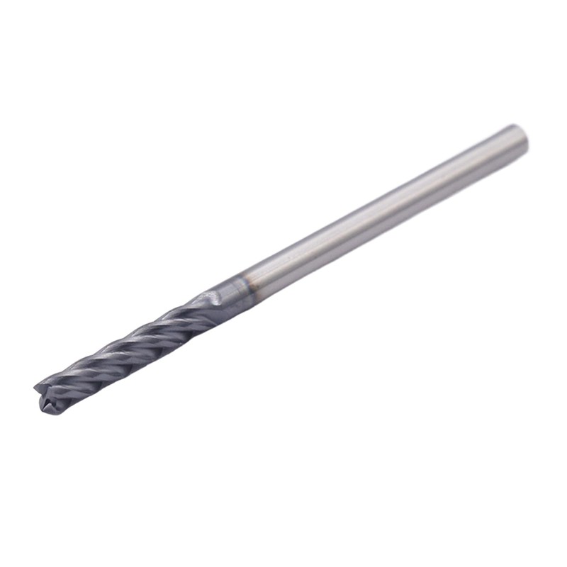 - Size: 1/8" cutting diameter x 1/8" shank diameter x 3/4" length of cut x 2-1/4" overall length, 4 Flute, 30° Helix, Solid Carbide Long End Mill, AlTiN Coated.