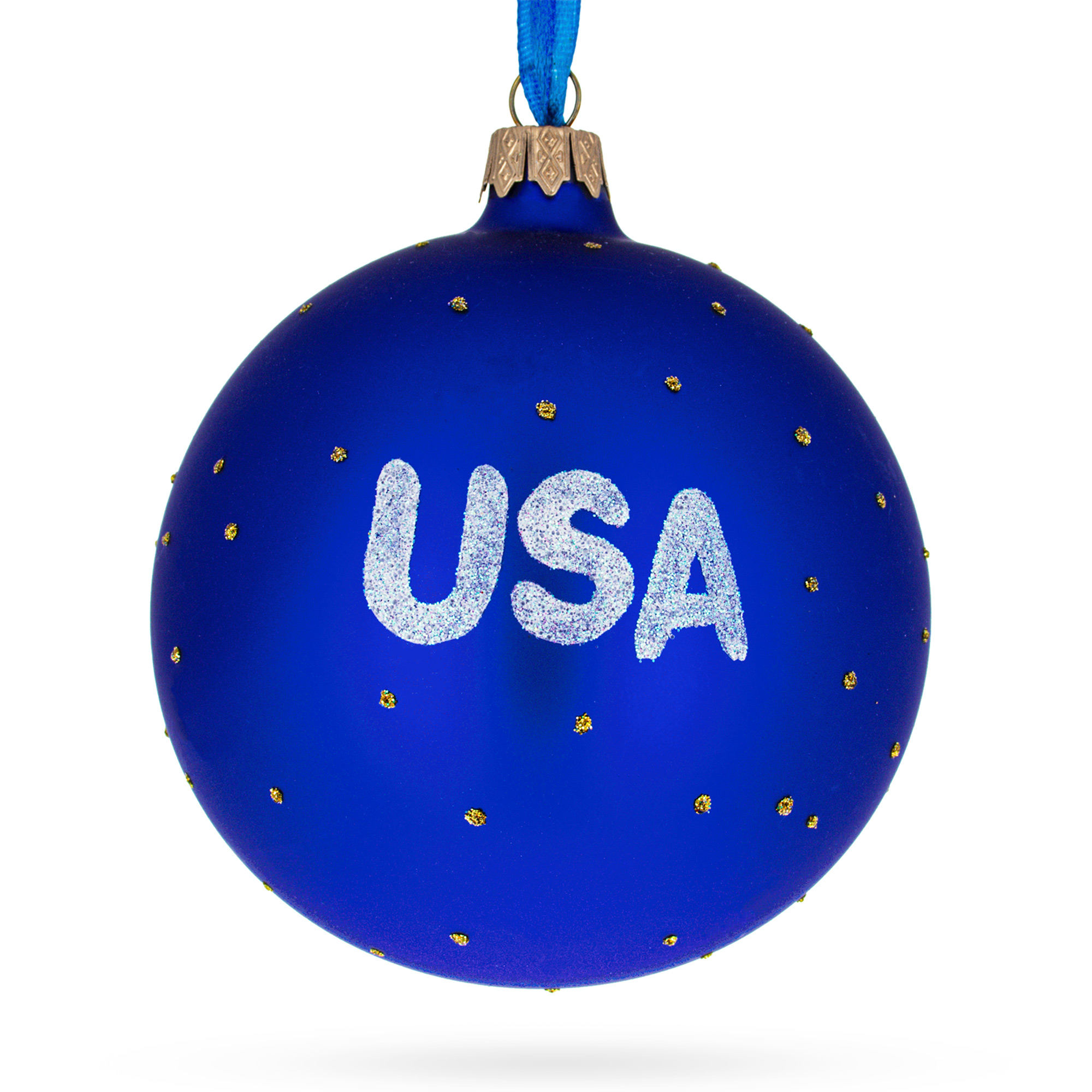 BestPysanky Flag of United States of America on Blue Glass Ball Christmas Ornament 4 Inches