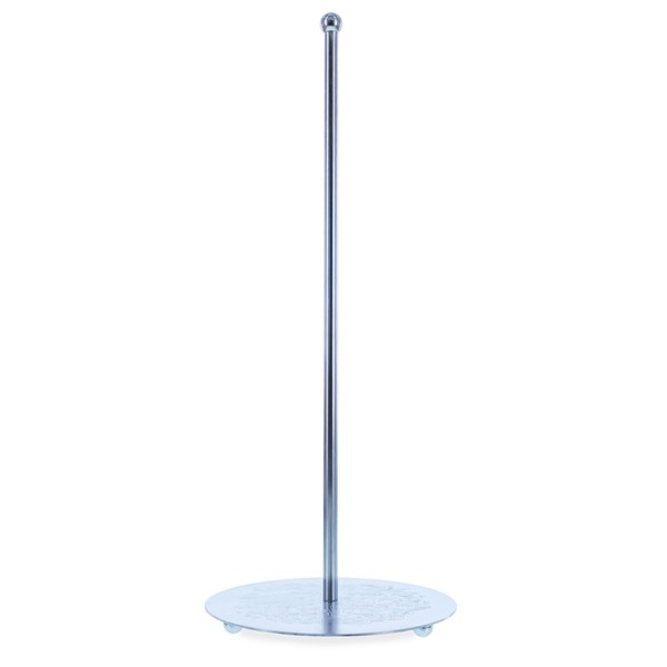 Display your treasured tree topper with timeless elegance using this Ornate Rod Stand. Featuring a tall, vertical rod and a solid round base, this display stand seamlessly blends aesthetic appeal with reliable functionality. The radiant silver finish and subtly embossed base lend a vintage charm that enhances seasonal décor, wedding themes, or everyday displays.