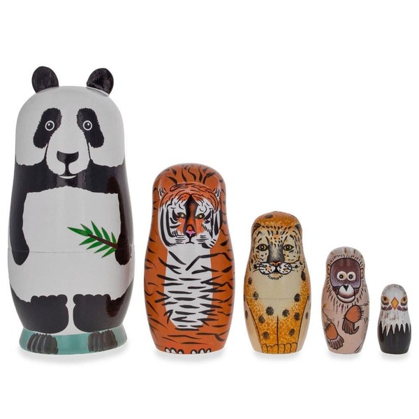 Add a festive touch to your holiday home decor with BestPysanky endangered animals nesting dolls. This beautiful set consists of 5 wooden figurines which separate, top from bottom, to reveal a smaller figure of the same sort inside, which has, in turn, another figure inside of it, and so on.