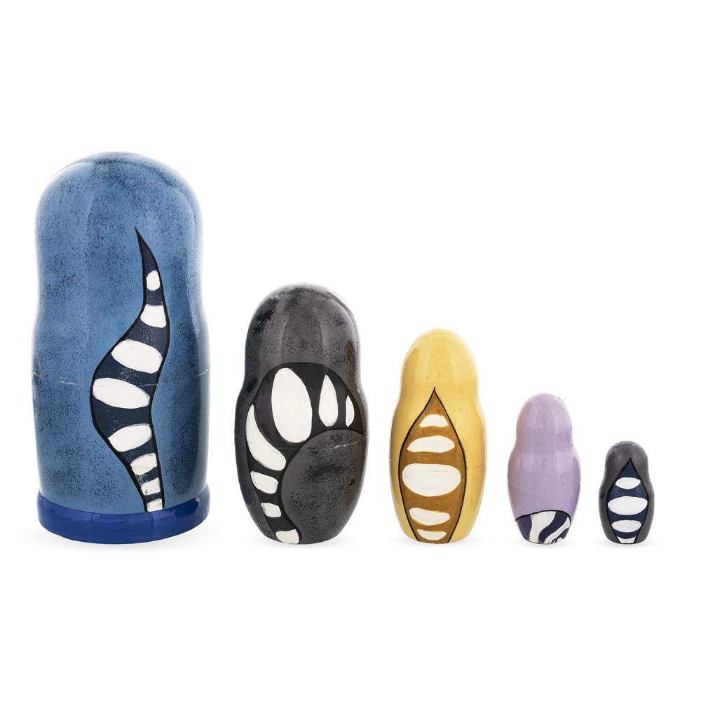 Add a festive touch to your holiday home decor with BestPysanky nesting dolls. This beautiful set consists of 5 figurines which separate, top from bottom, to reveal a smaller figure of the same sort inside, which has, in turn, another figure inside of it, and so on.