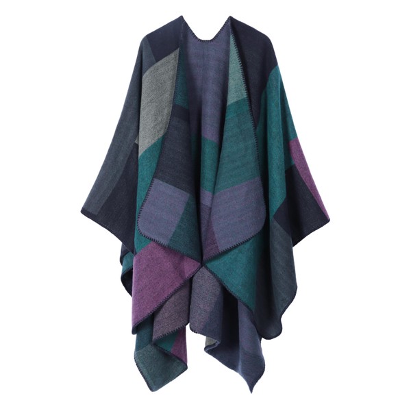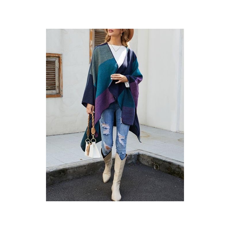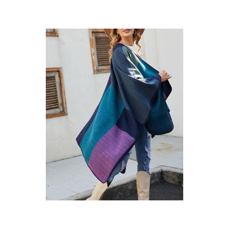 - Versatile Everyday Style: The color blocked styling makes for a great everyday look. Works with jeans, dress, high boots, sweaters, skirts, t-shirts, blouses, eye-catching on the street. Wrap style shawl with open front is perfect for no hassle everyday use.