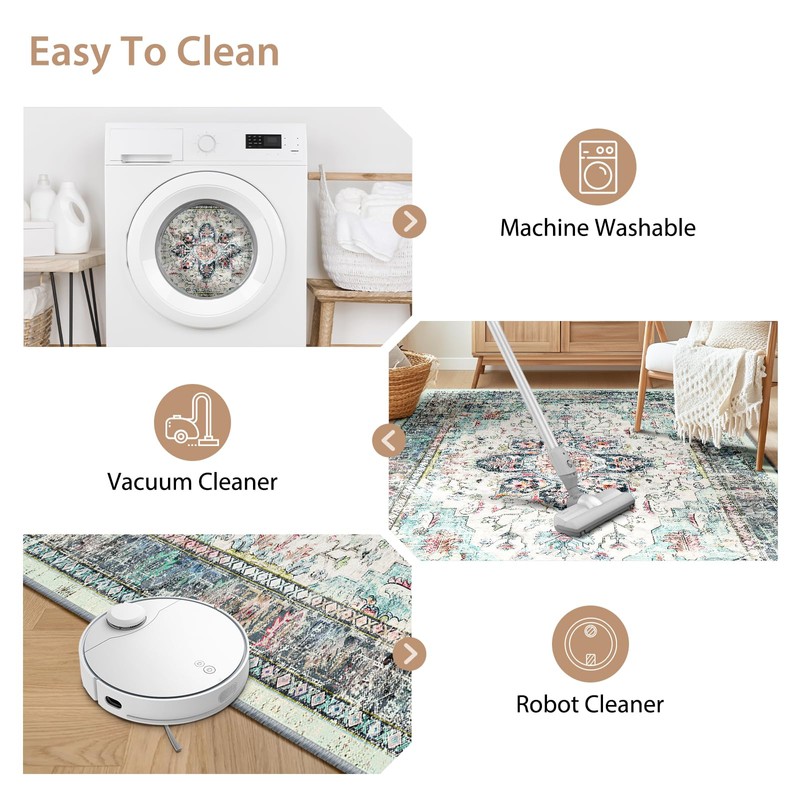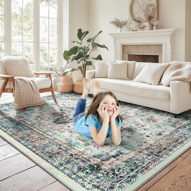 Machine washable area rugs for living room, bedroom, dining room.