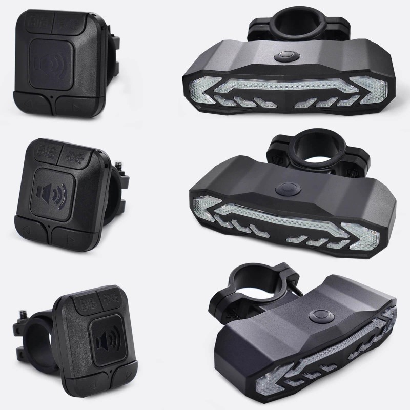 Bike Turn Signals (with clicking sound) Auto Brake Light Anti-theft Vibration Alarm (with 7 adjustable sensitivity) Loud 110dB Bike Horn (with 3 horn tones) Product Features: