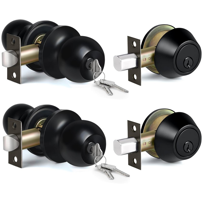 BESTTEN 2 Pack Keyed Same Exterior Door Knobs and Single Cylinder Deadbolts Combo Set, Keyed Alike Entry Door Knobs with Locks and Keys for Entrance and Front Door, Matte Black