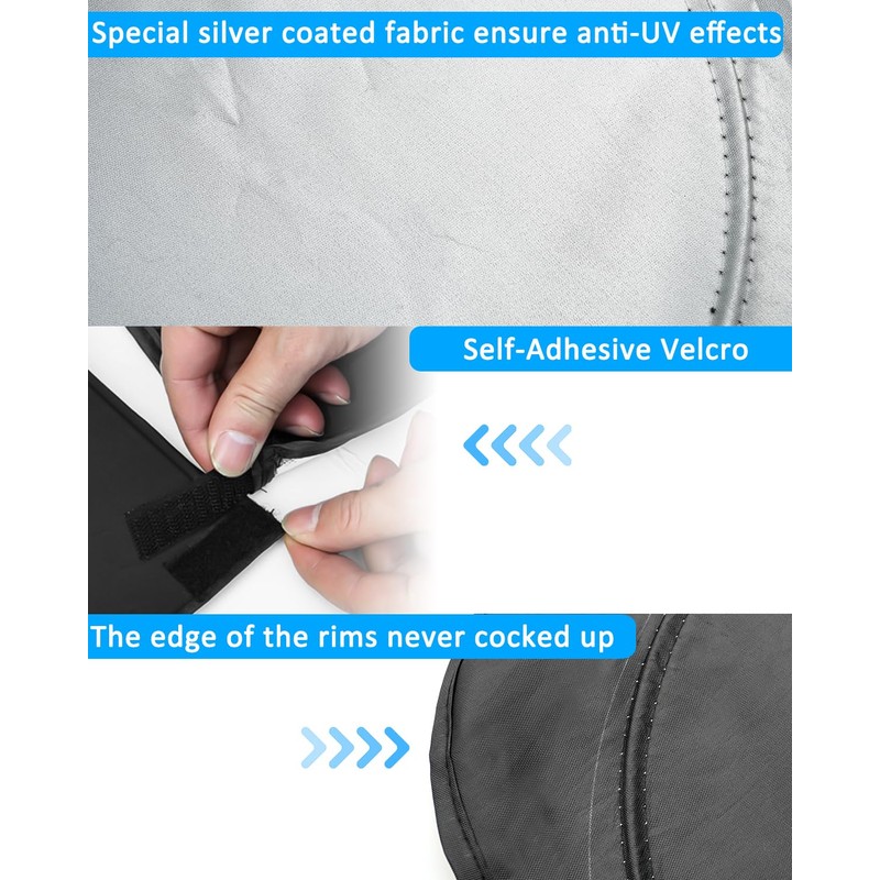 - FOLDABLE AND PORTABLE - The windscreen sunshade can be easily popped up and folded in seconds for everyday use. Reinforced rings offer durability with flexibility, never deform, easy to unfold and store. You can store the folded-up sun shade anywhere.