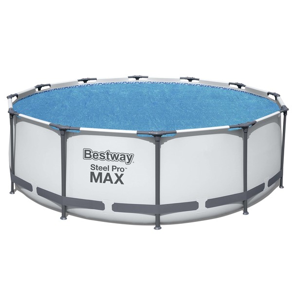 Keep your pool water warmer the natural way with the Bestway Solar Cover. Solar covers reduce evaporation and radiant heat loss by trapping the heat inside your pool and collecting the rays of the sun for additional heating. This cover also helps keep out unwanted debris. Easy to use, this cover fits just inside the edge of the pool and floats in place. Designed for use with the 12' Steel Pro frame pools or similar pools by Intex or Summer Escapes.