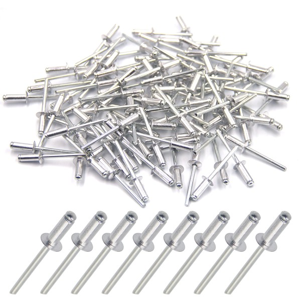 BESTYCHAO 100pcs Aluminium Blind Rivet 4.8mm x 12mm, Open End Rivet Pop Rivet, Pack of 100 (Silver)