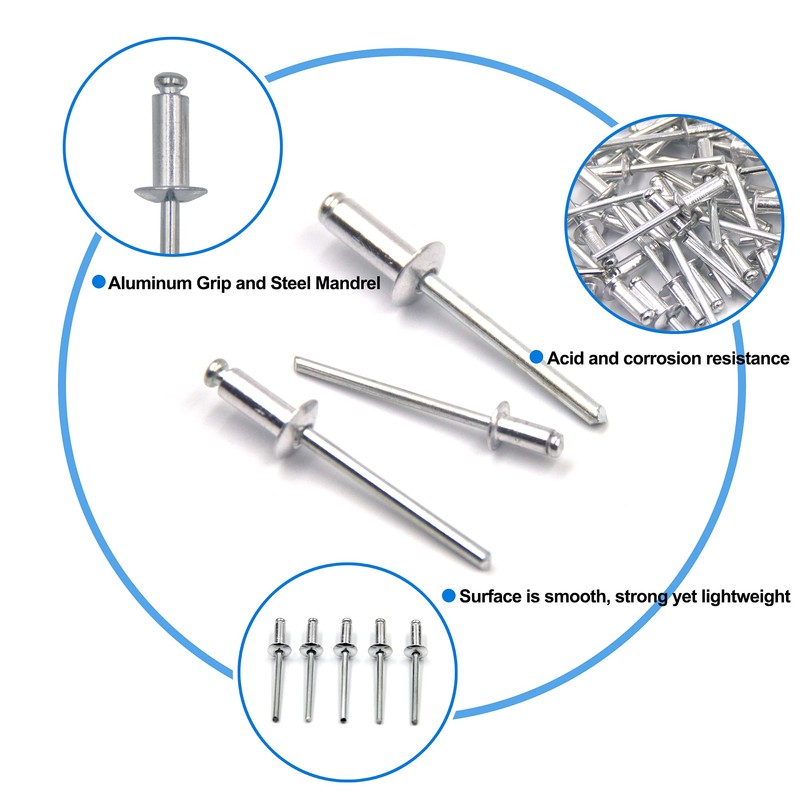 - MATERIAL - These blind rivets are made of high quality aluminium nail body and steel nail core. This rivet surface is smooth. It is toughness and easy to use.