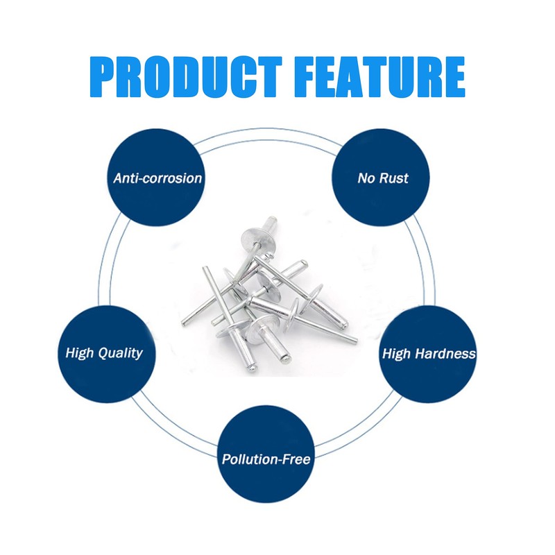 • 【FEATURE】Simple and fast connection, no heat generation, use on coated components possible, flat connections through flat head. The smooth mandrel of the flange rivets has no burrs and has fine workmanship.