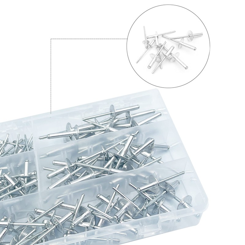 BESTYCHAO Pop Rivets, 120pcs 5 Sizes Large Flange Aluminum Blind Rivets Assor...