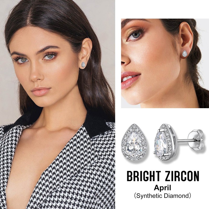 Bestyle 925 Sterling Silver Teardrop Cut Birthstone Stud Earrings for Women, April White Diamond Stud Earrings with Love and Purity, Best Women Earrings for Everyday Wear