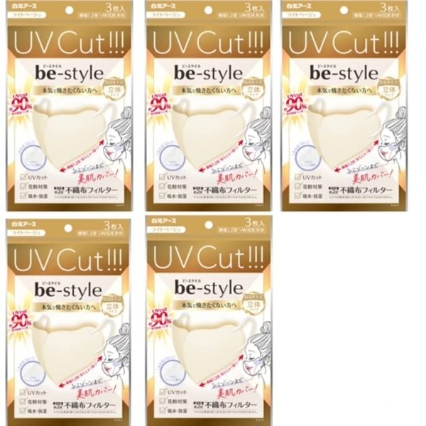 BeStyle Hakugen Earth UV Protection Mask, Set of 5, Light Beige, 3D Type