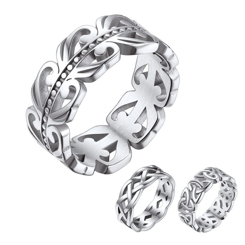 Bestyle Stainless Steel 8mm Celtic Band Ring Flower Hawaiian Leaf Ring for Women, Chunky Big Wide Thumb Ring, Every Day Wear Casual Ring for Any Occasion, Size 12