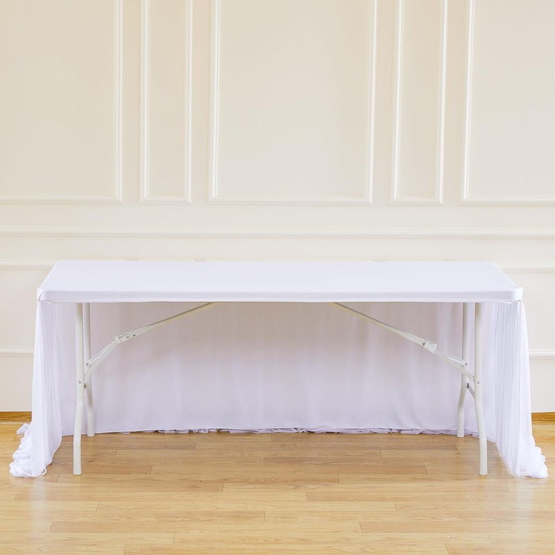 Besutolife White Tulle Tablecloth for Rectangle Tables 6ft 3 Sides for Wedding Birthday Party Bridal Shower White Tutu Ruffle Table Cloth Banquet Dinner Table Decorations 2Pack