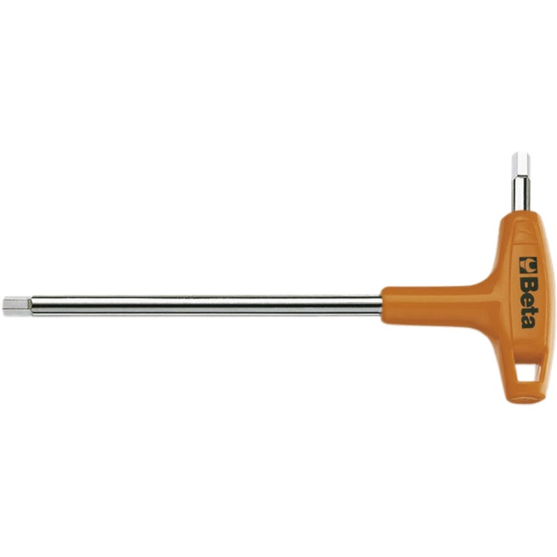 The #96T T-handle hexagon key wrench has two tips plus our one-of-a-kind orange ergonomic handle that provides high torque. The “hex-shape” is forged out of round bar. You’ll notice the difference when you use these because they last a long time before they ever round-out. These are available in 11 metric sizes ranging from 2mm to 10mm. Also available in 10 SAE sizes from 3/32 to 3/8”.