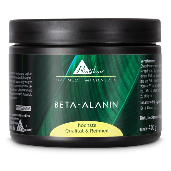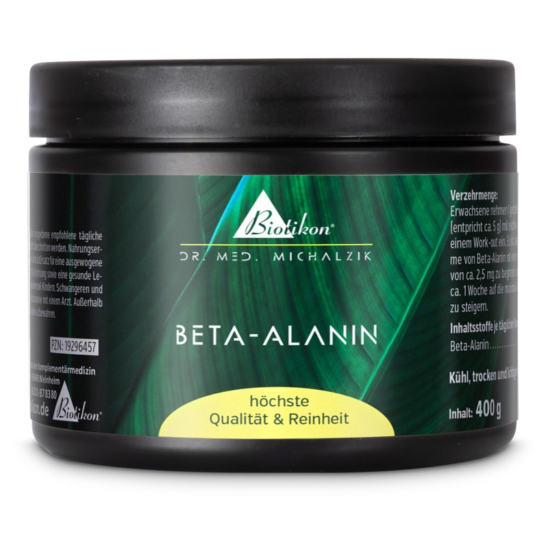 Original according to Dr. Michalzik, beta-alanine powder is a biogenic amine and the precursor of L-carnosine, which is mainly found in muscle and nerve tissue. 400 g of the purest beta-alanine powder for individual dosage of up to 5 grams per day. Best premium raw material guaranteed without additives. Developed by the Biotikon medical team under the direction of Dr. med. Alexander Michalzik. Over 20 years production experience, over 40 years of vital substance experience.