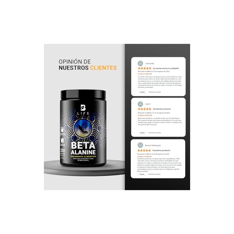 Beta Alanina en polvo 200 Servicios. Ingredientes naturales. Beta Alanine 400 Gramos B Life. - Producto Original de Alta Calidad, Entrega Rápida y Seg