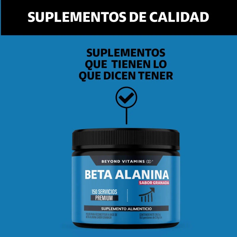 🌟 ⭐ Beta Alanina Premium En Polvo | 150 Servicios De Máxima Pureza | Sabor Granada Beyond Vitamins - Pre Entreno - Pre Worout | Vitaminas Mujer / Hombre - 100% Puro - 316.5g ⭐ 🌟