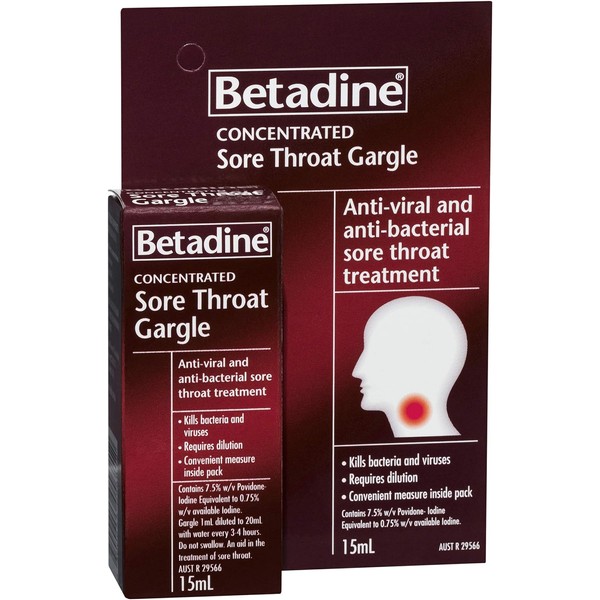 Betadine Sore Throat Gargle Concentrated - Kills bacteria that may cause a sore throat, 15mL