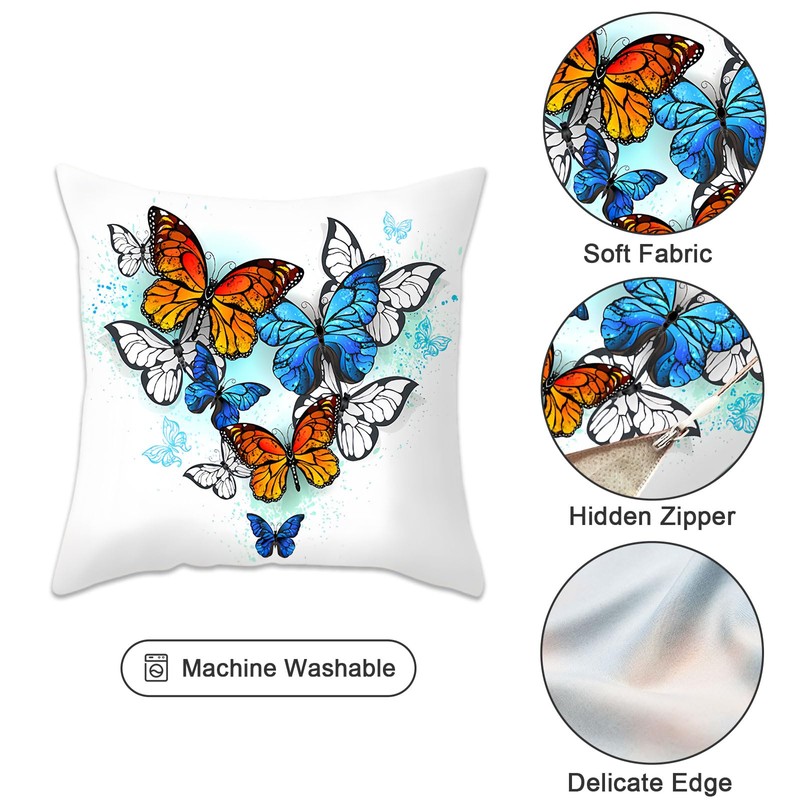 Betadistor White Cushion Covers 18 x 18 inch Set of 2, Floral Butterfly 45cm x 45cm Soft Polyester Square Throw Pillow Case for Living Room Sofa Couch Bed Pillowcases, White with Butterfly, 507-0127