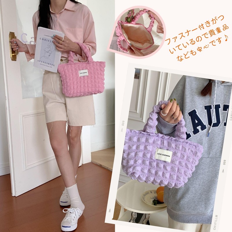 Betaly Tote Bag, Women's Quilted Bag, Cute Popcorn Tote Bag, Small Items, Lightweight, Work or School, Shoulder Bag, Eco Bag, Handbag, Zippered, Small, Uneven, Students, Girls, Stylish, Bag, Korean