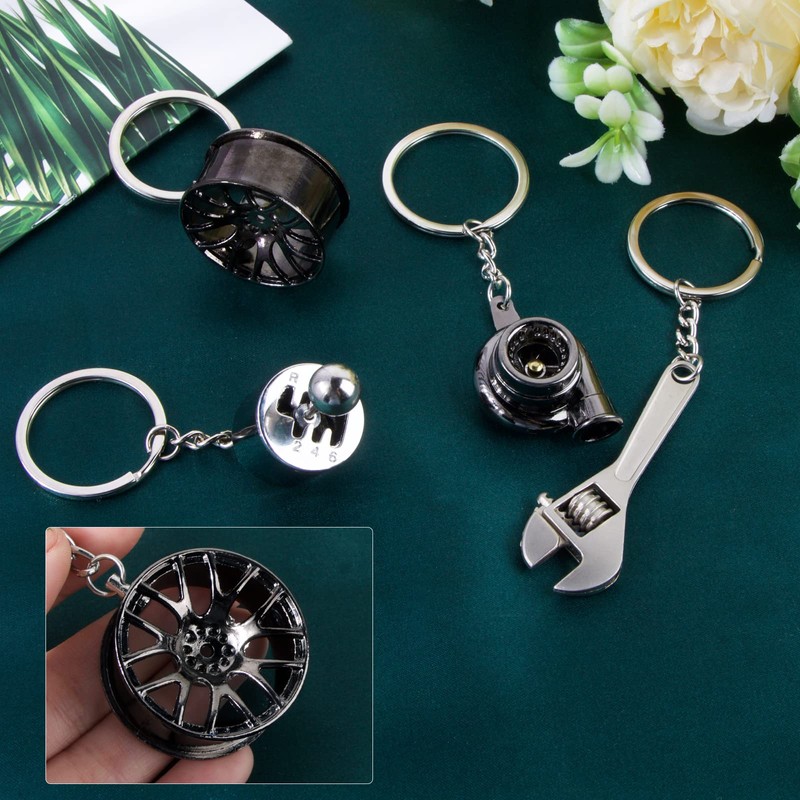 - 🚗LIEFERUMFANG: 4 verschiedene Schlüsselanhänger in Schraubenschlüssel-, Radnabe-, Shifter-, Turboform
