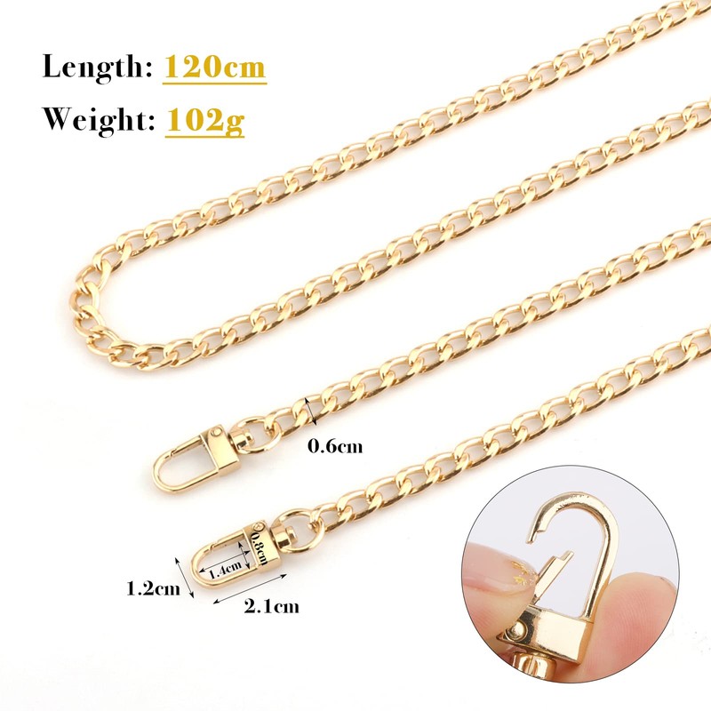 • Handbag chains: the golden colour of the 120 cm long bag chain is electroplated with a special process, the colour is bright and smooth, not easy to fade and rust and durable