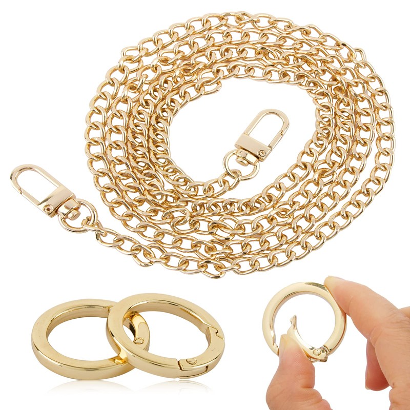 BETESSIN Handbag Chain Metal Gold 120 cm Carry Strap with 2 Pieces Carabiner Ring O-Ring Bags Chains Shoulder Strap Purse Shoulder Strap Chain Strap DIY Bag Making Crafts