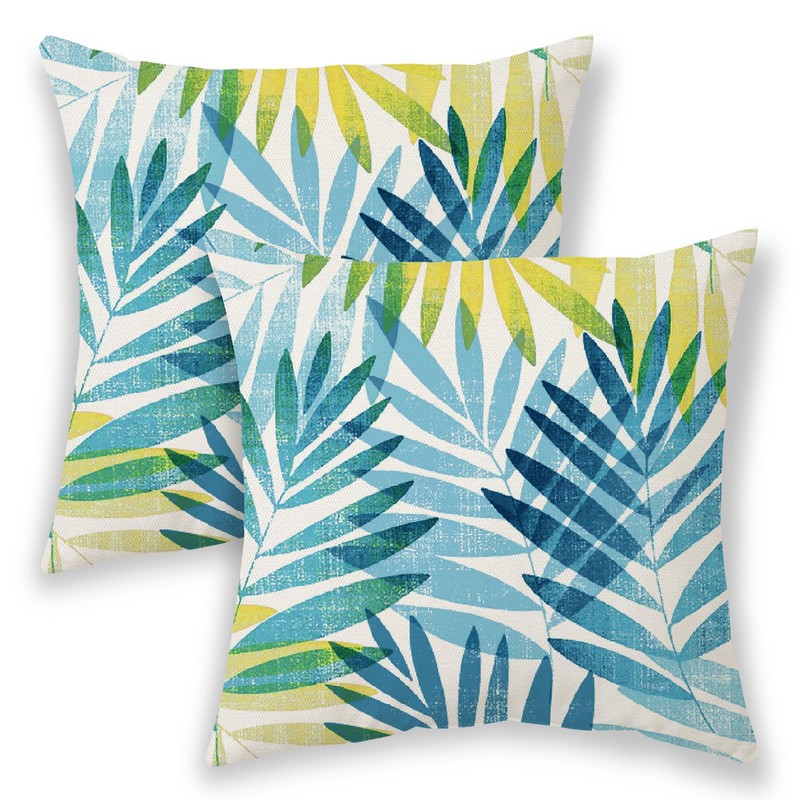 BETGINY Summer Outdoor Pillow Covers 18x18 Inch 2 Pcs, Tropical Blue Teal Yellow Green Palm Leaves Decorative Throw Pillows,Leaf Farmhouse Decor Pillowcase Linen Cushion Cover for Home Couch Sofa Bed