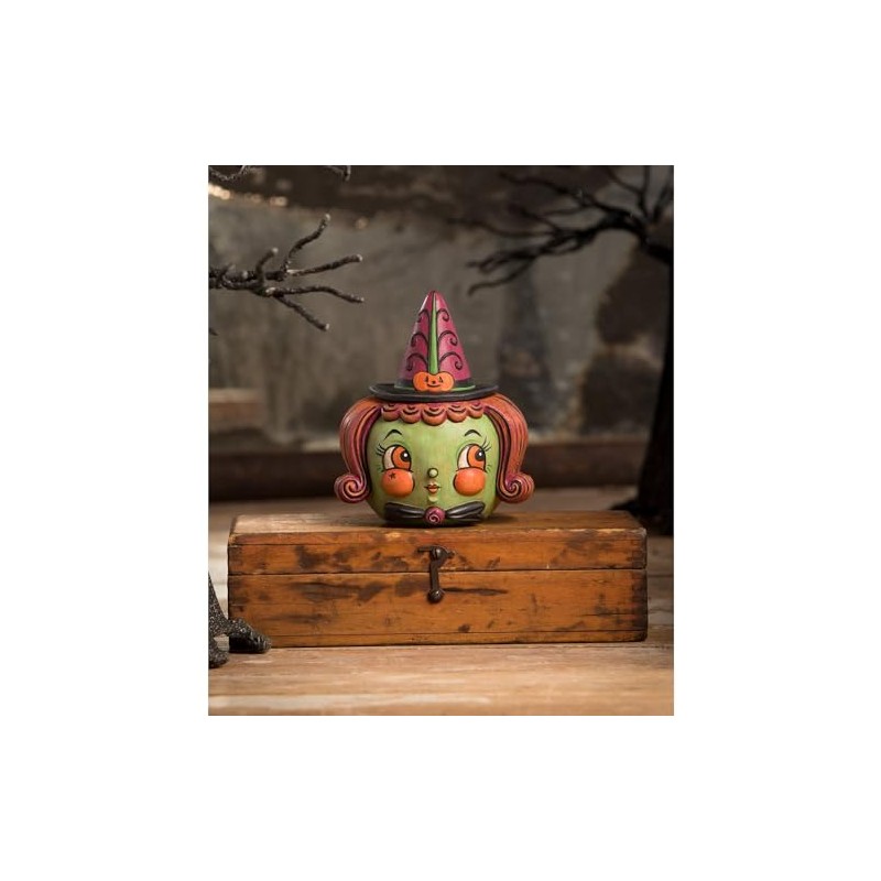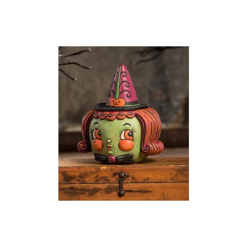 - UNIQUE DESIGN: Which old witch? This Hagatha witch by Johanna Parker is a hollow head with a witch hat as the lid. You can fill her with little wrapped treats for your favorite good witch!.