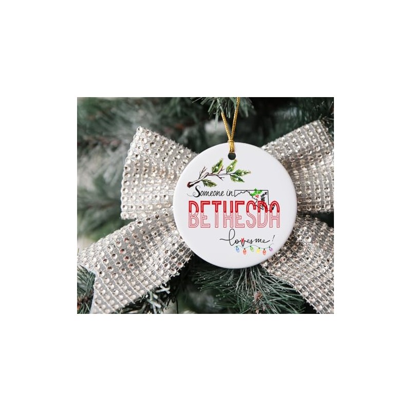 Bethesda Maryland Souvenir Christmas Ornament 2024 Someone in Bethesda MD Loves Me! Christmas Family Friend Gifts Ideas 3" White