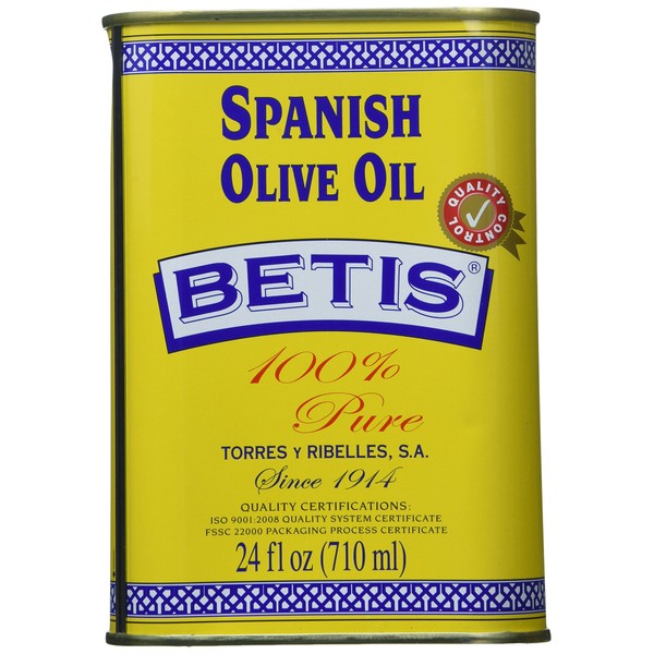 Betis Pure Olive Oil 24oz in Can, Organic Refined Spanish Aceite de Oliva Puro, Fruity Flavor, Gluten Free, All Natural, Ideal for Frying, Drizzles, Sauteing and Salad Dressing (Pack of 1)