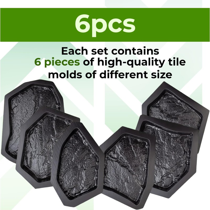 Betonex 6 pc Flagstone Molds ABS 2mm - Reusable Paver Molds for DIY Stepping Stones & Garden Paths