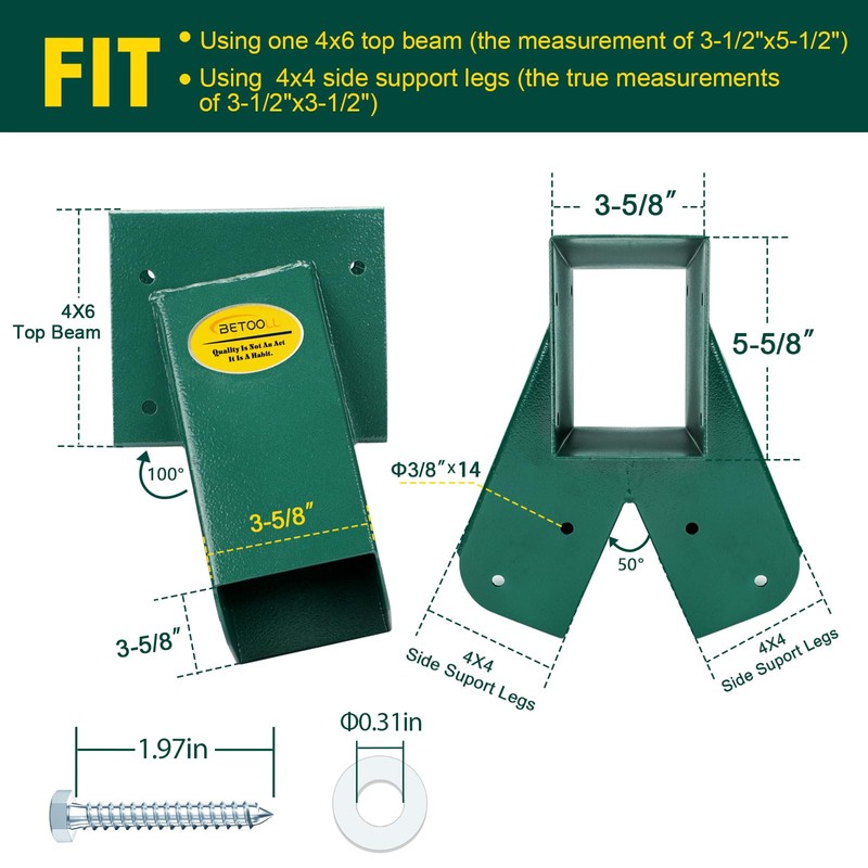 - Sturdy Construction swingset brackets: Our green swing bracket is made of heavy-duty steel with 100% welded joints, and the metal surface of the swing set frame is powder coated, making it durable, sturdy, and corrosion-resistant. This ensures a long-lasting use and prevents rusting, ensuring a sleek and elegant frame structure