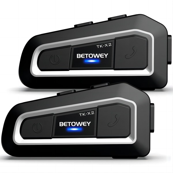 BETOWEY Motorcycle Intercom 2 Pack, TK-X2 Helmet Bluetooth Headset with 1000m Range, Two Microphone Options for Snowmobile/ATV/Dirt Bike