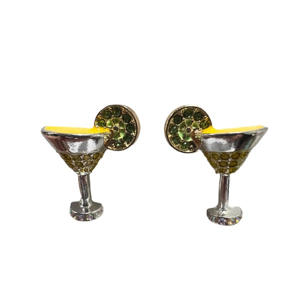 • Cute silver tone Martini shaped stud earrings feature yellow enamel on top of drink, yellow crystal accents around front of drink & iridescent crystal accents on base of glass.
