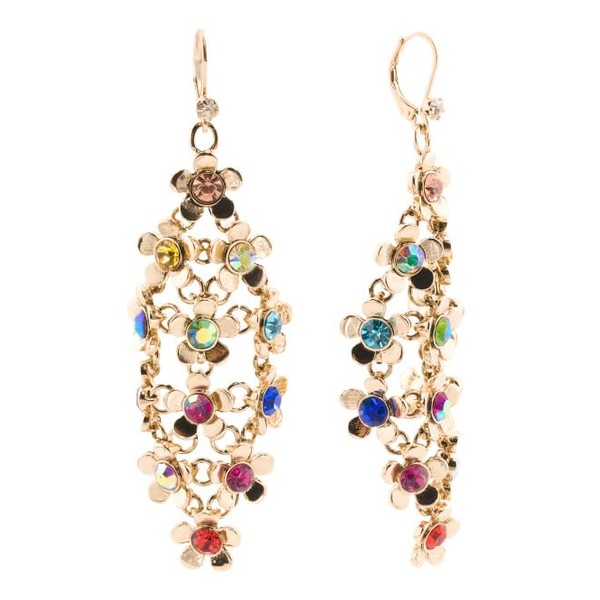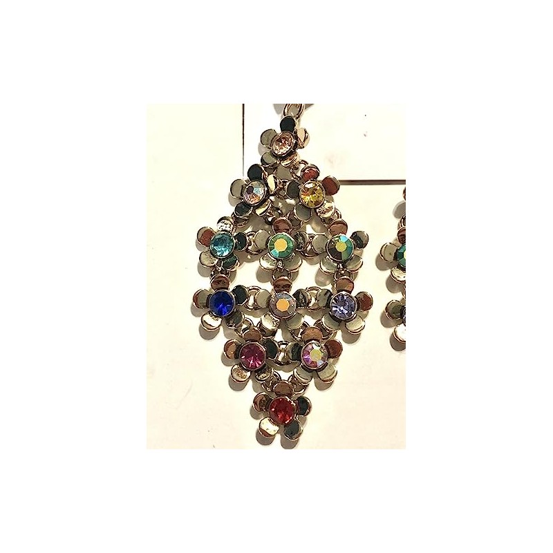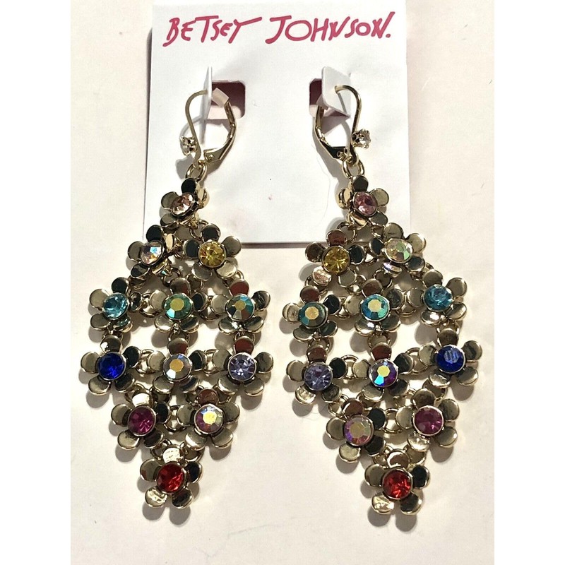Betsey Johnson Love Fest Flower Chandelier Dangle Earrings Multicolor Crystals Great Valentine's Day Gift Idea Birthday Present New Year XMAS GIFTS